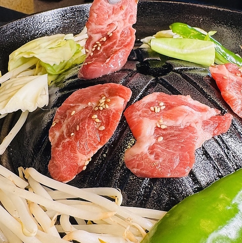 当店一番人気の看板メニュー!厳選した生ラムを、赤ワインベースの秘伝ダレにじっくり漬け込み、旨みと香りを引き出しました。鉄板で焼くと赤ワインの香りがふわっと立ちのぼり、やわらかいラム肉からあふれる肉汁が野菜と絡んで最高の一皿に◎たれもあっさりしてずっと食べ続けられる!女子でもカロリー気にせず楽しんでいただけます♪