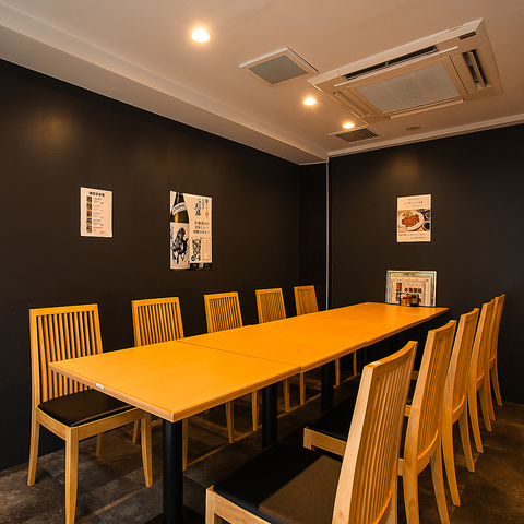お席は、便利なテーブル席に加え、8名様まで快適にご利用いただける完全個室を完備しております!また、店内のシックでブラックの壁面が落ち着いた雰囲気を演出し、訪れる人々に安らぎをもたらします。会社帰りの一杯を楽しむだけでなく、大切なご宴会や接待の場としてもご活用くださいませ!