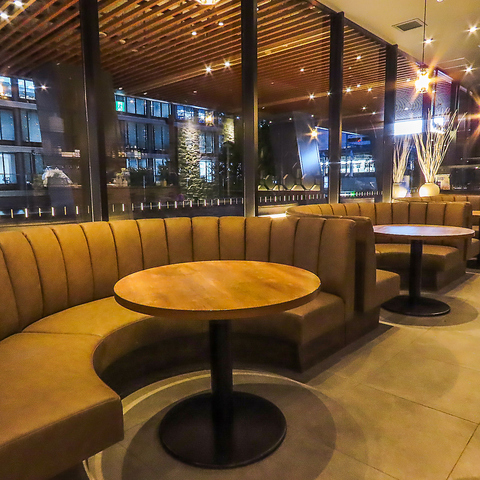 【広々としたテーブル席で快適にお過ごしいただけます】全席テーブルやソファ席の仕様。51席の広々とした店内は、グループでもゆったりと過ごせる快適なレイアウトです。