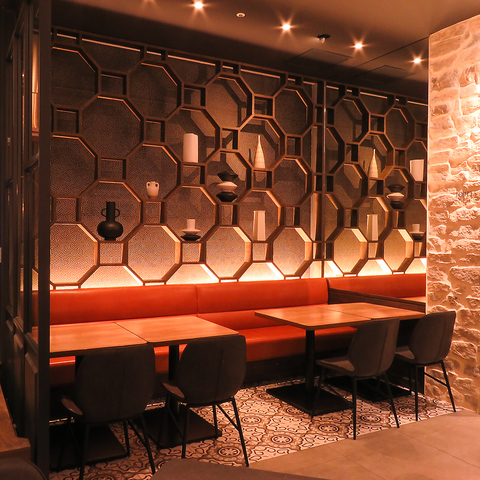 和モダンな落ち着いた雰囲気のお席はテーブルとソファでご用意。デートや記念日などの大切な日に博多小皿料理でゆったりとしたお時間をお過ごしください