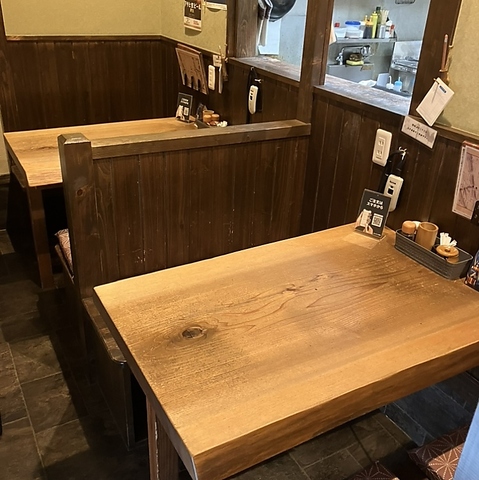 | テーブル | 4名様×2 | 広々としたテーブル席は、少人数からグループまで快適にご利用可能。焼鳥と会話をゆっくり楽しめる落ち着いた雰囲気です。 |