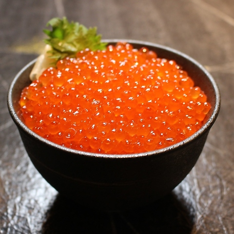 蟹の甲羅に敷かれたシャリの上に〈イクラ/うに/蟹〉をふんだんに盛った一品です。丼物より小さいので少しだけ食べたい方におすすめです。