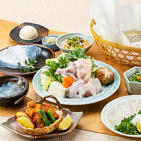 下関直送・天然とらふぐを贅沢に味わえる飲み放題付き(2時間制)季節限定コース! 【ふぐ刺し】【ふぐ鍋】が楽しめるシンプルコースから【唐揚げ】【焼きふぐ】までついたフルコースまで3コースをご用意しました。ご宴会にもピッタリ!※2026年2月末まで
