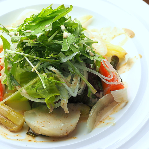 ランチタイムには契約農家、朝市場仕入れの新鮮野菜をシンプルに調理したサラダバーを存分に楽しめます◎