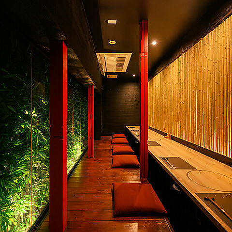 別席との距離も十分に取れたカウンター席。雰囲気のある和モダンな空間で上質なお肉をお愉しみいただけます。女子会や記念日、デートなどに最適です。いつもよりちょっと贅沢な夜をぜひ当店でお過ごしください。