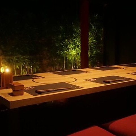 別席のお客様と十分距離の取れたカウンター席は写真映えする和モダンな空間。後ろには竹を眺めることができ、デートや記念日、女子会まで様々なシーンでお愉しみいただけます。ぜひ贅沢なひとときを「しゃぶしゃぶ龍樹」で。