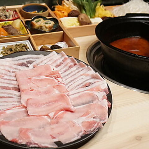 ヘルシーが売りの龍樹ポークコースは9種のおばんざい×9種の2色鍋選べる特製の出汁でご堪能いただけます。