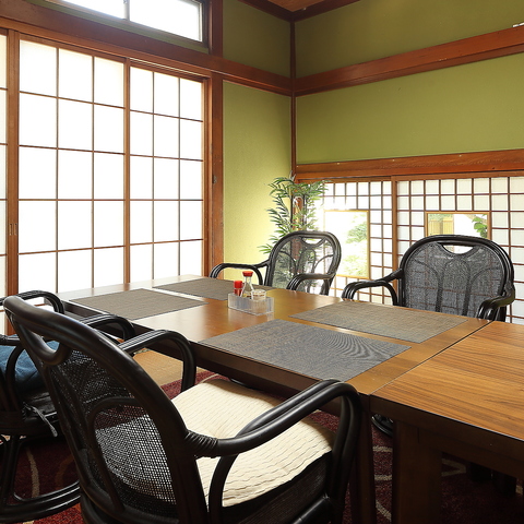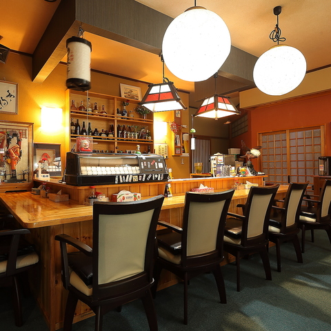 美しく彫り込まれた鳥の彫刻が目を引く、上品で落ち着いた空間が広がっています。お一人様でも気軽に立ち寄れるカウンター席が8席、そして少人数でゆったりと過ごせる6名様用テーブル席が1卓ございます。洗練された和の雰囲気の中で、旬の食材を活かした本格的な和食を心ゆくまでお楽しみください。