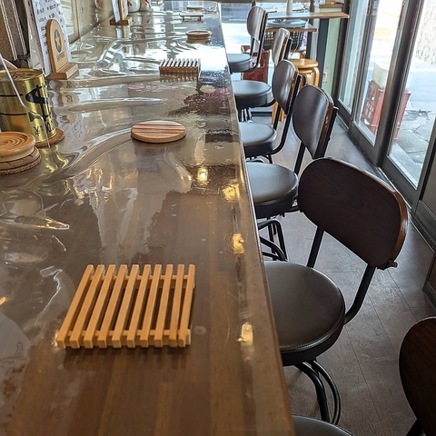 【お一人様でも心ゆくまでお過ごしいただけるよう、広々としたカウンター席を10席ご用意しております】調理風景を眺めたり、店主やスタッフとの気兼ねない会話を楽しんだり、思い思いの時間をお過ごしいただけます。お仕事帰りに「ふらっと一杯飲んで帰りたいな」と思った時にぜひ!気兼ねなくお立ち寄りください♪