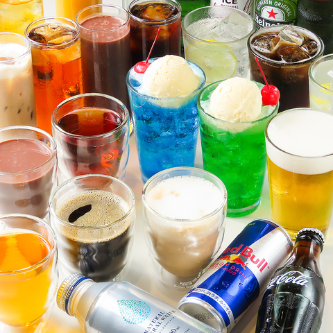 当店はお飲み物のラインナップも豊富◎炭酸系やカフェ系はもちろん、ブルークリームソーダなど映えるドリンクも♪アルコールも幅広く、生ビールやハイボールといった定番に加え、人気のクライナーファイグリングも各種バリエーションを揃えております!ぜひお酒に合うおつまみと合わせ満喫してください♪