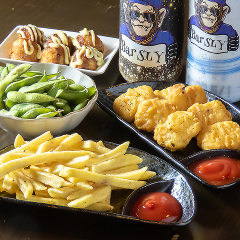 ただお腹を満たすだけでなく、料理が会話や笑いのきっかけとなるようなメニュー!例えばロシアンたこ焼きは、誰かが激辛に当たるスリルが楽しいバラエティメニュー♪お菓子盛りやチキンナゲットも、気軽につまみながらダーツやカラオケで盛り上がれるラインナップです★
