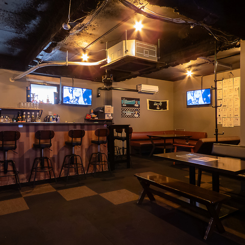 店内は落ち着いた雰囲気で、カウンター席やテーブル席、ソファー席を完備しております。ご友人と楽しく過ごすのにぴったりのスペースが広がっており、リラックスできる空間を提供しています!スポーツ観戦やゲームを楽しむための大型モニターも設置されており、賑やかな雰囲気の中で特別な時間をお過ごしいただけます。