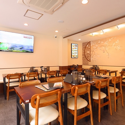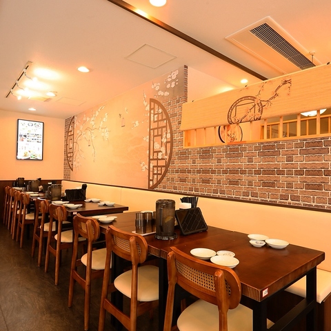 スペースに余裕を持たせた座席配置や、包間化できる円卓席など、周囲を気にせずに食事を楽しめる設計が特徴です。グループ客や宴会にも対応できるよう工夫されており、落ち着きながらも賑わいのある空間を両立しています。