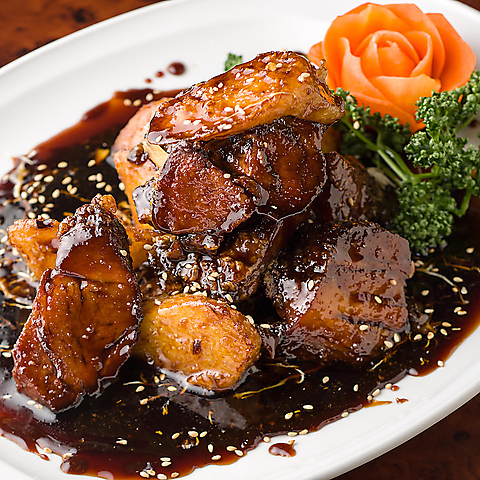 香ばしく揚げた豚肉に、コクのある黒酢だれをたっぷりと絡めた、当店自慢の一品。さらに長芋を加えることで、ほくっとした食感とほどよい軽やかさが生まれ、甘酸っぱい味わいに絶妙なアクセントを添えています。濃厚ながらま重すぎず、ご飯のおかずにもお酒のおともにもぴったり。世代を問わず人気の黒酢豚を、ぜひ一度ご賞味ください♪