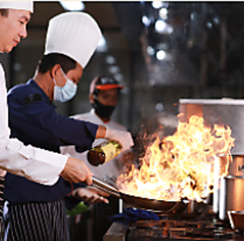 世界最大の料理の一つである中華料理は、火力が命。当店では高圧ガスバナーを使用し本場の厨房と同等の強い火力で一気に食材に火を通します。旨みを閉じ込め、香ばしさを引きだすことで、外はパリッと中はジューシーな理想的な仕上がりに。炒め物や煮込みなど、シンプルな料理にも技と火力が宿ります。本場の”火の力”を、ぜひご体験ください♪