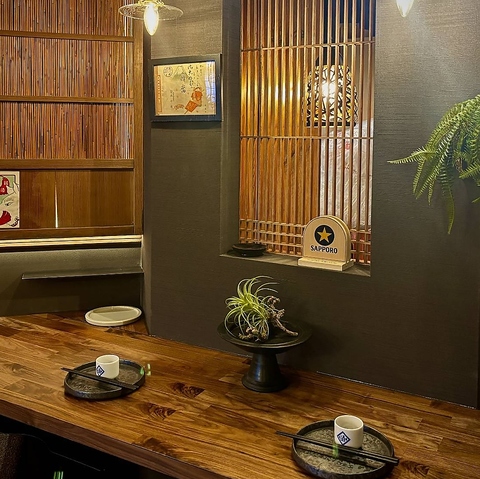 日本酒の香りをお客様に楽しんでいただけるよう、当店は全席禁煙席となっております。和の雰囲気が漂う店内はカウンター席やテーブル席、お座敷をご用意しております!お一人様はもちろん、大人数でのお食事にも最適です♪