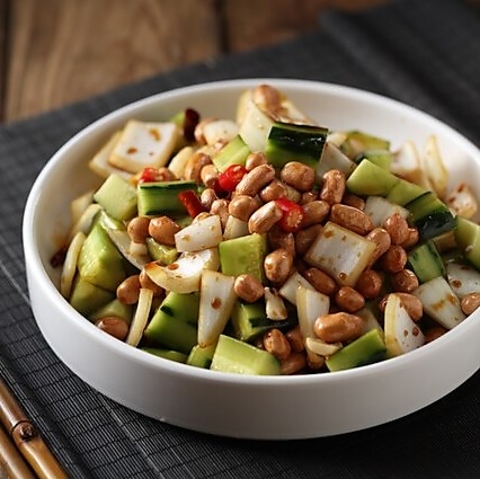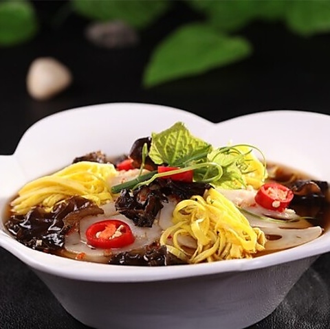 自家製黒粉皮は、プルプルとした独特の食感が癖になる、中国東北部のソウルフードです。黒い粉を使用して作られた皮は、噛むほどに旨味が広がります。ごまベースや醤油ベースのタレをかけ、シャキシャキの新鮮野菜と共にお楽しみください。色々な味わいを楽しめる一品として、ぜひご賞味ください。