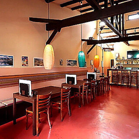 異国情緒を感じるおしゃれな空間をご提供!インド・ネパールで買い付けたカラフルな照明が温かな光を灯し、店内を明るい印象に。ダークブラウンの家具が落ち着いた雰囲気をプラスします。大切な方々と至福のひと時をお楽しみください。