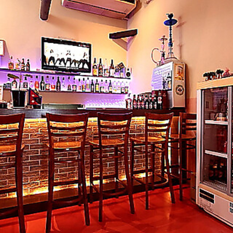 ダークブラウンの家具が落ち着いた雰囲気をプラスします。お席はお一人様も大歓迎のカウンター席あり◎