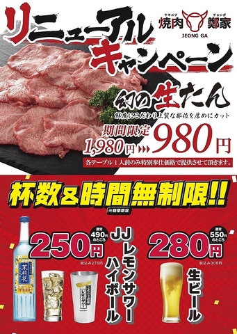 生タン980円!ビール280円!2/1リニューアル記念・衝撃価格スタート!