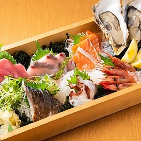 市場から毎日直送の鮮魚をお刺身や焼き物で!選べるお刺身意味盛り合わせは一番人気の商品です!
