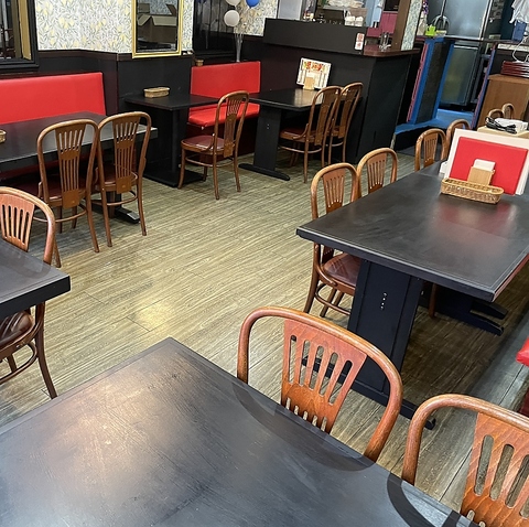 木目調の温かみのあるインテリアが特徴で、リラックスできるカジュアルな店内です。