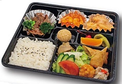 牛肉のオイスター炒め/海老のチリソース煮/海老のマヨネーズ和え/春巻き/焼売/海老のクルトン揚げ/サラダ/ザーサイ/ゴマ団子/ライス/フルーツ ※ご注文は1個から承ります ※デリバリーは行っておりません ※お弁当に関しては事前のご予約をお願いいたします