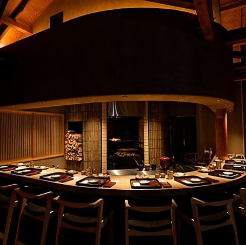 【調理を楽しむカウンター席】目の前で職人の手腕を楽しめるカウンター席。お一人様のお食事はもちろん、パートナーとのお食事や語らいの場としてもぴったり。目の前で焼き上がる料理を見ながらお食事をお楽しみいただける、当店の特等席です。