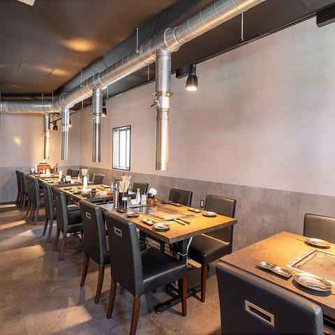 【ゆったり座れるテーブル席】広々としたテーブル席は、大人数での宴会や、食事にぴったりな空間となっております◎周りを気にすることなく、ワイワイと賑やかに料理を、楽しんでいただけます♪活気の溢れる雰囲気の中、美味しいお肉とお好きな飲み物を囲んで、ゆっくりと味わいながら、楽しいひとときをお過ごしください!