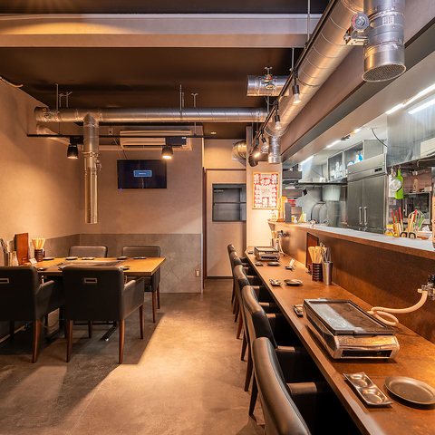 【臨場感あふれるカウンター席】目の前で楽しめる、調理を見ながら、お食事をお楽しみいただける、カウンター席のご用意もございます◎鉄板の上で焼き上がるお肉の香りや、調理の音を間近で感じながら、熱々の一番美味しい状態で料理を堪能できます★デートや、女子会、お一人様でも気軽に立ち寄れる、おすすめのお席です♪