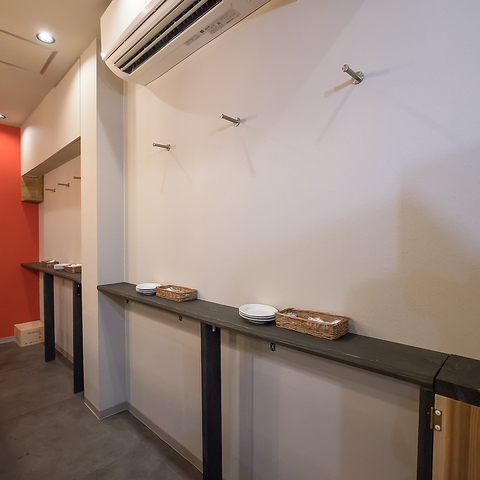 カウンター席は横並びに座れるデザインで、デートにもぴったり!隣同士で会話を楽しみながら、美味しい料理とドリンクをお楽しみいただけます♪立ち飲みテーブル席は友達同士の集まりや、仕事帰りの一杯にも最適です!