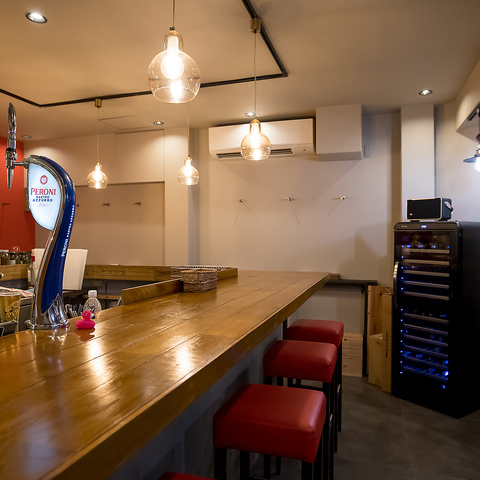 お一人様でも気軽に立ち寄れるカウンター席は全15席をご用意!立ち飲みスタイルのテーブル席も2卓完備しており、ご友人との軽い飲み会や仕事帰りの一杯にも最適です♪心地よい雰囲気の中、確かな技が光る料理とワインで楽しいひとときをお楽しみください♪