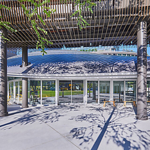 グラングリーン大阪うめきた公園サウスパーク内に位置し、都市公園の四季折々の美しい景色をお楽しみいただける当店。イベントスペースと連結する大屋根は、著名な建築家ユニット「SANAA」による設計。訪れる人々に癒しとインスピレーションを与える空間です。
