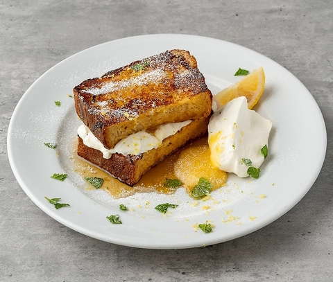 全粒粉食パンをじっくり漬け込み、フレンチトーストに仕上げました。サンドしたマスカルポーネとレモンソースが、まるでチーズケーキのような味わいです。