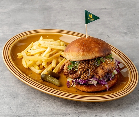 バターミルクでジューシーに仕上げたフライドチキンを豪快にバーガーにしましたスパイスやハーブ、マスタードの辛味が絶妙に調和し、仕上げにかけたテリヤキソースが隠し味となっています。