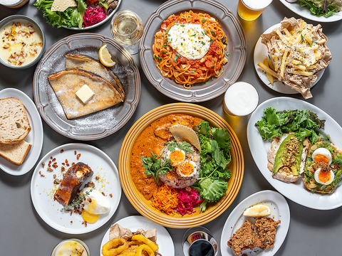 焼きたてのパン、サンドウィッチ、ハンバーガーなど多彩な料理をご用意。会話と食をつなぐカフェ&バル。