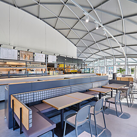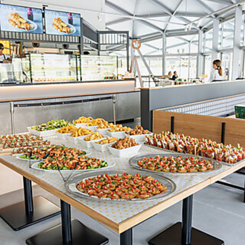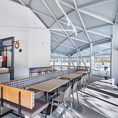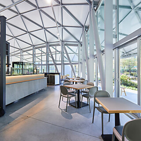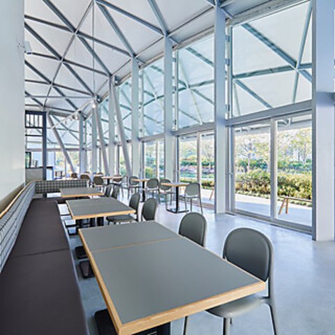 グラングリーン大阪うめきた公園サウスパーク内に位置し、都市公園の四季折々の美しい景色をお楽しみいただける当店。イベントスペースと連結する大屋根は、著名な建築家ユニット「SANAA」による設計。訪れる人々に癒しとインスピレーションを与える空間です。