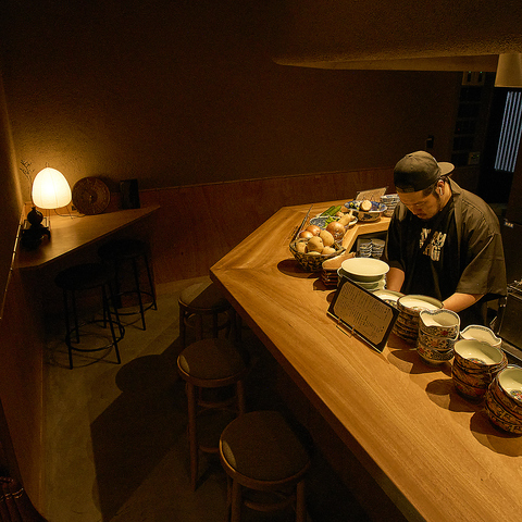 カウンター席から店主の手仕事を眺めながら、こだわりの料理を楽しむことができます。新鮮な素材を使った料理が、目の前で丁寧に作られる様子は、食欲をそそり、味わいの期待感を高めてくれます◎心温まるひと時をお過ごしください!