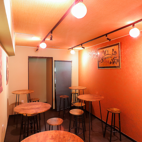 | テーブル | 20名様×1 | 温かみのある雰囲気で、友人とのカジュアルな食事やデートにぴったりです。小さなテーブルとスツールが並び、リラックスした会話を楽しむのに最適な空間を提供しています。 |