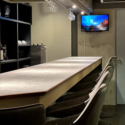 入口から店内奥までの大きなカウンター席は、オーナーとも距離が近く料理やお酒はもちろん、お話しも楽しめます。にまでこだわった洗練されたスタイリッシュな空間で、ご飲食をお愉しみください。