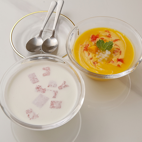 潮汕式牛肉火鍋をたっぷり楽しんだ後は、手作りの「楊枝甘露(ヨンジーガムロ)」で、デザートタイムを華やかに彩りましょう。マンゴーやグレープフルーツ、そしてクリーミーなココナッツミルクが絶妙に組み合わさったこの一品は、さっぱりとした甘さが特徴で、火鍋の後にぴったりです♪