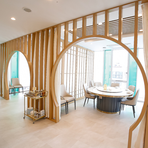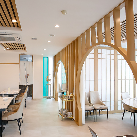 白を基調とした高級感あふれる店内には水槽が設置されており、新鮮な魚介類をお客様ご自身で選んでいただけます。選ばれた素材は、シェフがその場で手際よく調理します。目の前で仕上げるライブ感に満ちた体験をお楽しみください。