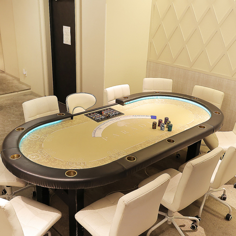 【ポーカーテーブル】ゲームに必須のポーカーテーブルを当店を5台用意しております。ポーカーが初めての方から、ポーカー熟練者まで幅広い方が楽しめる空間になっております♪老若男女、年齢など一切関係なし!すべての方にお楽しみいただけます!!