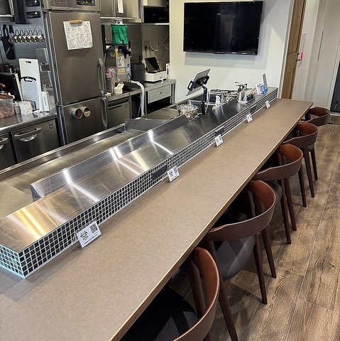 当店のカウンター席は、鉄板で料理を作る様子を間近で楽しめるのが魅力のひとつです!シェフが丁寧に仕上げる美味しい料理の香りや音を感じながら、お食事を楽しむことができます。カウンター席では、お料理と一緒に美味しいお酒もご堪能いただけますので、ご友人との会話や特別なひとときを過ごすのにぴったりです◎