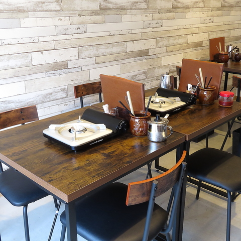 移転オープンで明るく洗練された空間に生まれ変わった店内。木目調の壁と落ち着いた照明が心地よく、どこか温かみのある雰囲気が魅力です。清潔感のあるテーブル席で、鍋を囲んでゆったりとした時間をお過ごしいただけます。少人数の飲み会から気軽な宴会まで、幅広いシーンにぴったり。