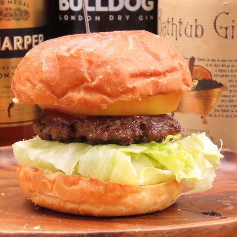 【自分好みにトッピング】牛100%パティを使用した食べ応え抜群のスマッシュ「ハンバーガー」1,190円(税込)