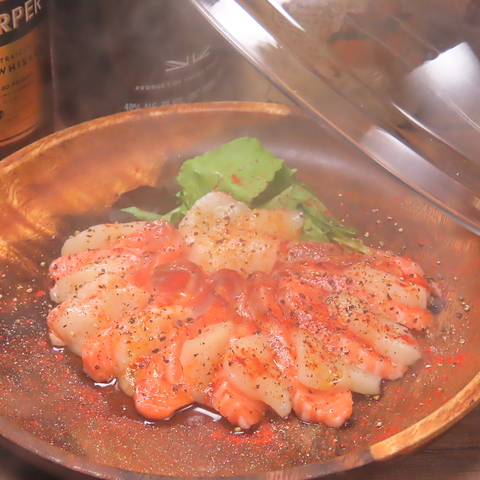 LOFTの「宴会コース」は、全6品の燻製料理が楽しめる、まさに美食の饗宴です!コース内容には、お店で丁寧に燻製し「燻製の盛り合わせ」や、香ばしい「燻製 鴨のロースト」、とろけるような「ホタテとサーモンの瞬間燻製カルパッチョ」など、燻製の魅力を存分に味わえる逸品が並びます。さらに、嬉しい120分(LO90分)の飲み放題付きです♪