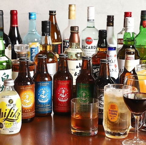 ビールからノンアルカクテルまで、存分に楽しめる2時間飲み放題。お酒好きにはたまらない多彩なメニュー!