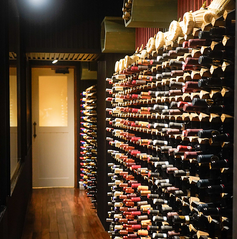 店内のワインセラーには、イタリア産・スペイン産を中心に30種類以上のワインがずらり。シャンパンも豊富で、特別な夜を彩る一本に出会えます。