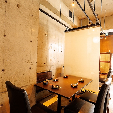 ロールカーテンを下げれば、周囲を気にせず過ごせる半個室空間に早変わり。接待や大切な方とのご会食、各種ご宴会にもご利用いただけます。ご要望がございましたら可能な限りご対応いたしますので、ぜひお気軽にご相談ください。通常時は開放的なレイアウトで、賑やかな雰囲気をお楽しみいただけます。